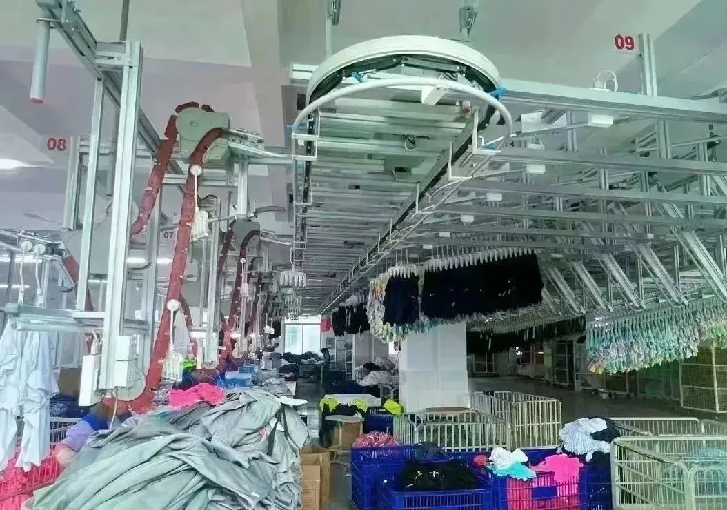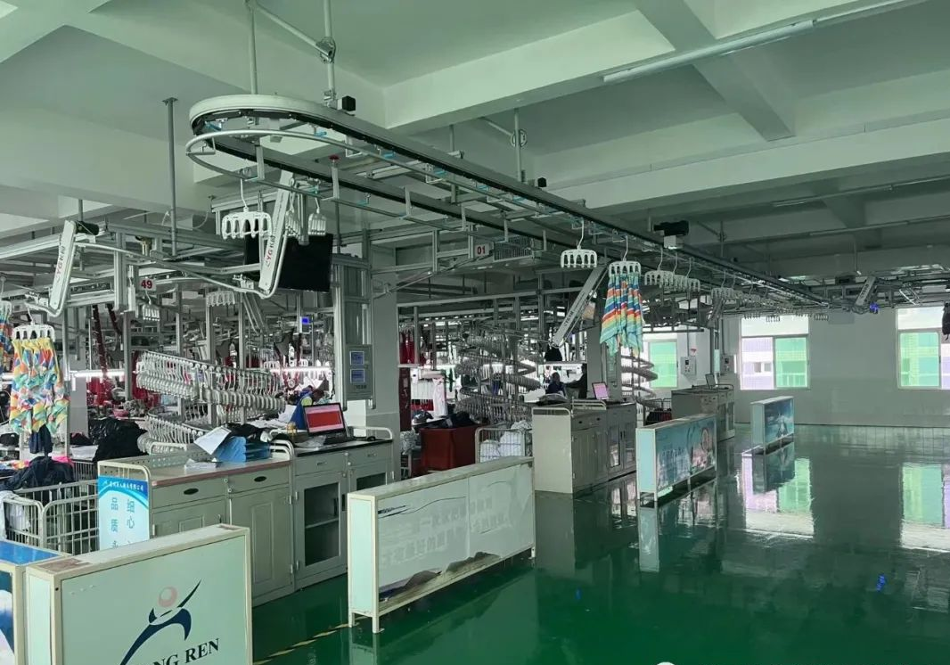 唐人生產(chǎn)車(chē)間使用長(zhǎng)園裝備智能吊掛系統(tǒng),一個(gè)系統(tǒng)可以同時(shí)控制多條流水線,提升生產(chǎn)效率。