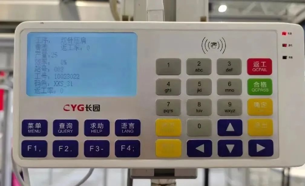 車(chē)間管理人員可通過(guò)操作面板顯示屏顯示吊掛數(shù)據(jù),可將每個(gè)員工的產(chǎn)量、返修數(shù)據(jù)做實(shí)時(shí)呈現(xiàn),產(chǎn)品線管理人員就可以根據(jù)每個(gè)員工的數(shù)據(jù)進(jìn)行分析,及時(shí)發(fā)現(xiàn)員工的效率異常,進(jìn)而了解情況,提升員工管理的效率,另外通過(guò)對(duì)返修數(shù)的跟蹤,可以及時(shí)發(fā)現(xiàn)質(zhì)量問(wèn)題,分析原因,及時(shí)處理。